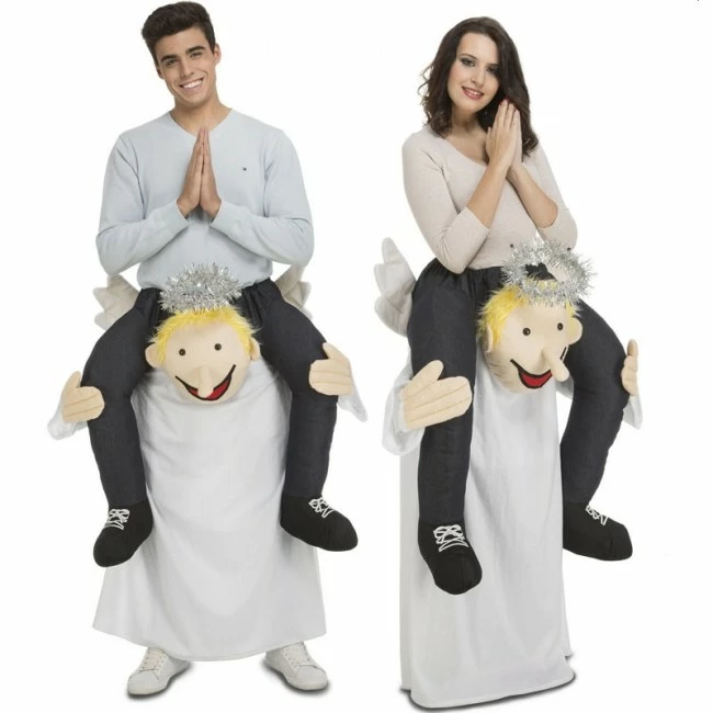 ¿Buscas ideas para disfrazarte de forma original y muy divertida? Te invitamos a conocer los disfraces Ride On, también conocidos como la moda disfraces Carry Me. Este nuevo disfraz de Angelito a hombros barato es un claro ejemplo de lo graciosos que son estos disfraces que producen la ilusión de ir a caballito o montado encima de un Ángel volador en este caso. Este disfraz de Angelito llevando a hombros a un adulto que se lo pone te hará no pasar inadvertido en tu próxima fiesta, Carnaval o despedida de soltero.
