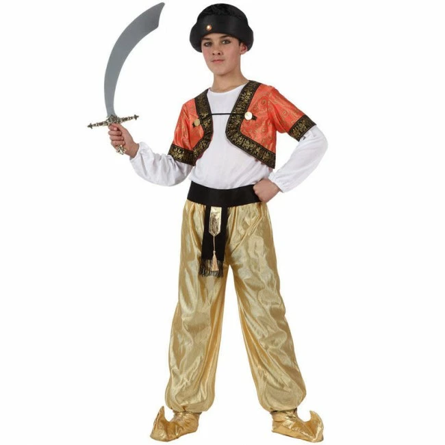 Un nuevo disfraz infantil masculino de Árabe. Tu hijo sorprenderá a todos sus amiguitos en la fiesta temática o Carnaval gracias a este traje infantil. El disfraz para niño de Árabe está compuesto por: Camisa, chaleco, pantalón, cubrezapatos, gorro y cinturón. Confía en nuestra tienda online para tus compras de disfraces y accesorios de cara a Carnaval o Halloween.