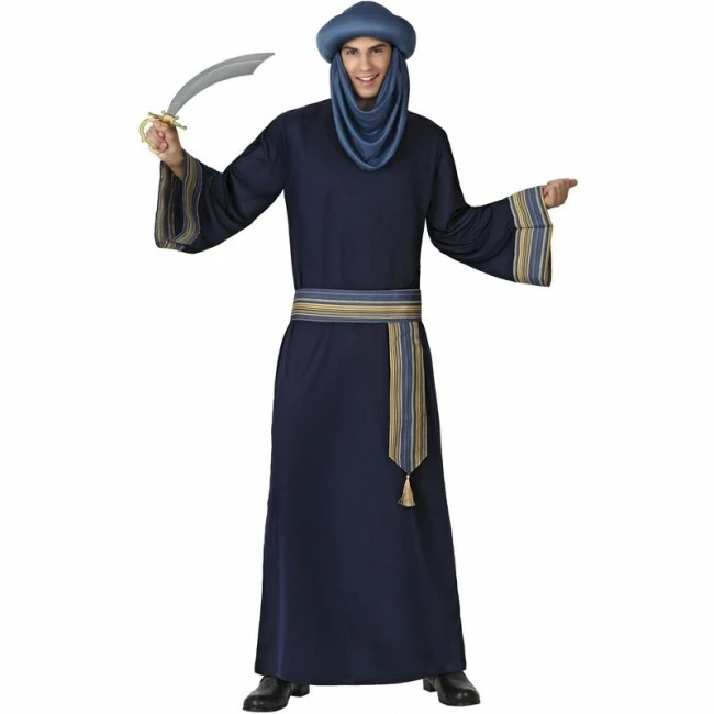Transfórmate en un llamativo Berebere de forma rápida usando este nuevo disfraz original de para hombres. No dejes pasar la oportunidad de disfrazarte como un Árabe azul con este traje de Carnaval masculino talla adulto que contiene turbante, túnica y cinturón y está disponible en 2 tallas. Este nuevo disfraz Jeque árabe de hombre es ideal para lucirlo en tu próxima fiesta de disfraces o desfile y forma parte de nuestro extenso catálogo de disfraces de Carnaval para hombre.