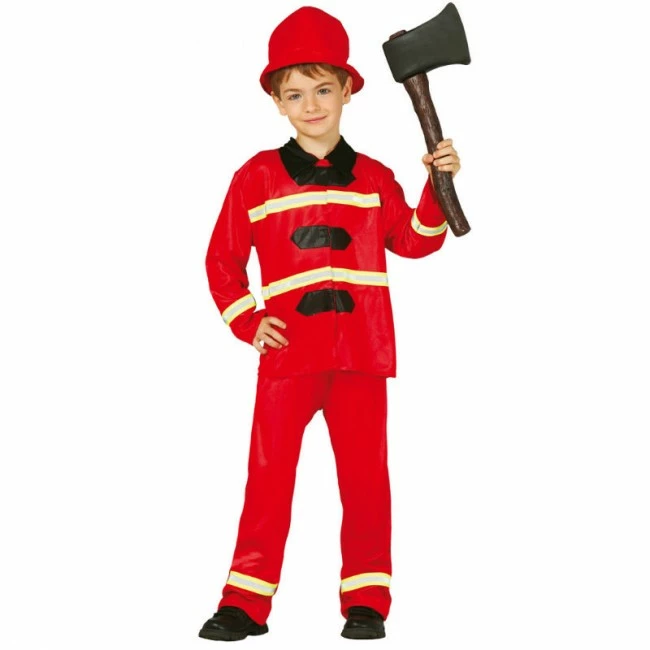 ¿Hay que apagar algún fuego? Disfraz de bombero infantil muy realista compuesto por pantalón, chaqueta y sombrero. Ideal para carnaval y fiestas de disfraces con temática de oficios. Con este completo disfraz de bombero vuestro hijo estará listo para apagar un incendio, salvar a cualquier lindo gatito de la copa de un árbol…