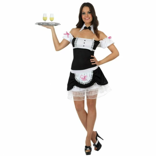 Llamadlo fetiche o fantasía pero lo bien cierto es que cuando uno piensa en un disfraz sexy para mujer siempre viene a la cabeza el típico disfraz de sirvienta. Efectivamente vuestra imaginación se hace realidad gracias a este modelo con excelente relación calidad precio. Vestido, pajarita e incluso una culotte: lista para trabajar o que trabajen para ti…