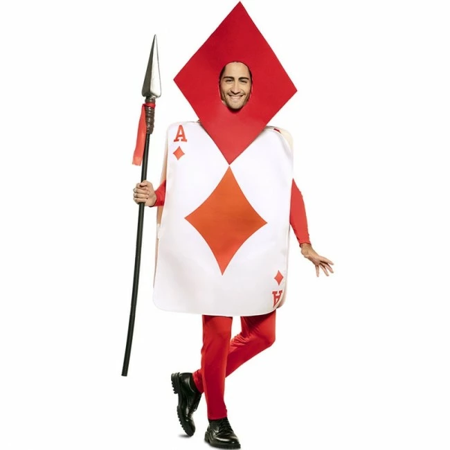 Transfórmate en una llamativa Carta as de Diamantes de forma rápida usando este nuevo disfraz de póker para hombres y mujeres. No dejes pasar la oportunidad de disfrazarte como el ejército del cuento de Alicia en el País de las Maravillas con este traje de carta de póker talla adulto que contiene coraza serigrafiada por ambos lados y tocado y está disponible en talla única. Este nuevo disfraz naipe de As de Diamantes de adulto es ideal para lucirlo en tu próxima fiesta de disfraces o desfile y forma parte de nuestro extenso catálogo de disfraces de cartas de póker para Carnaval, la mejor idea para disfrazarse en grupo con niños y mayores todos a juego convertidos en una baraja de póker.
