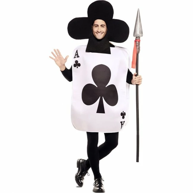 Transfórmate en una llamativa Carta as de trébol de forma rápida usando este nuevo disfraz de póker para hombres y mujeres. No dejes pasar la oportunidad de disfrazarte como el ejército del cuento de Alicia en el País de las Maravillas con este traje de carta de póker talla adulto que contiene coraza serigrafiada por ambos lados y tocado y está disponible en talla única. Este nuevo disfraz naipe de As de trébol de adulto es ideal para lucirlo en tu próxima fiesta de disfraces o desfile y forma parte de nuestro extenso catálogo de disfraces de cartas de póker para Carnaval, la mejor idea para disfrazarse en grupo con niños y mayores todos a juego convertidos en una baraja de póker.