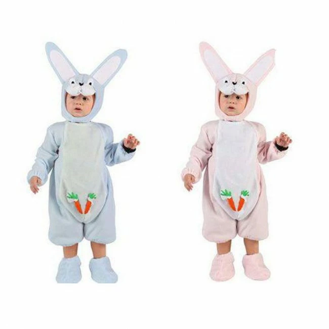 Completo disfraz de conejo, disponible en dos colores, azul y rosa, con tallas desde 0 a 24 meses.