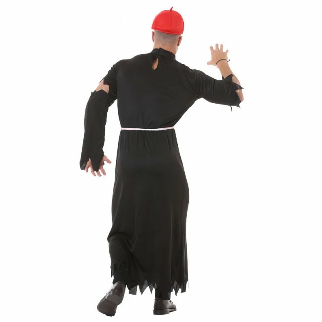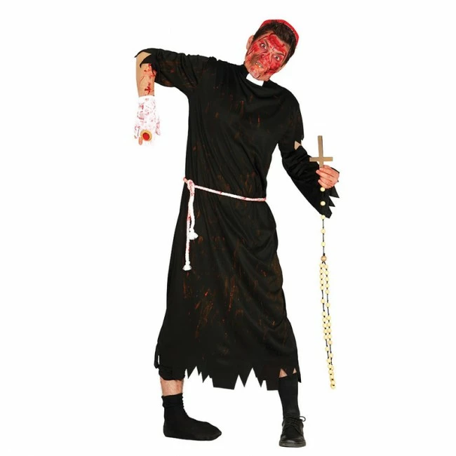 Ninguna persona se escapa a la invasión zombie, alguno debió colarse en alguna Iglesia y de esta manera acabo el cura de la parroquia. Un disfraz sencillo pero original al que solo le faltan unos toques de maquillaje sangriento para volver aún más realista si cabe.