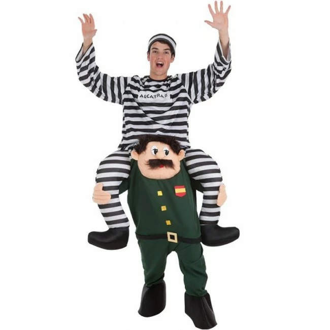 Si andas a la búsqueda de un disfraz Guardia Civil con preso a hombros nosotros tenemos la opción perfecta y al mejor precio. Adquiere tus trajes y disfraces ride on fácilmente desde tu ordenador y nos encargamos de hacerte llegar el disfraz Guardia Civil y un prisionero carry me para adulto rápidamente. Un divertido disfraz adulto de Guardia civil con preso a hombros que añadimos al amplio abanico de posibilidades de disfraces adulto masculinos con los que disfrazarse en Carnaval, una fiesta de despedida o todo tipo de eventos con disfraces.