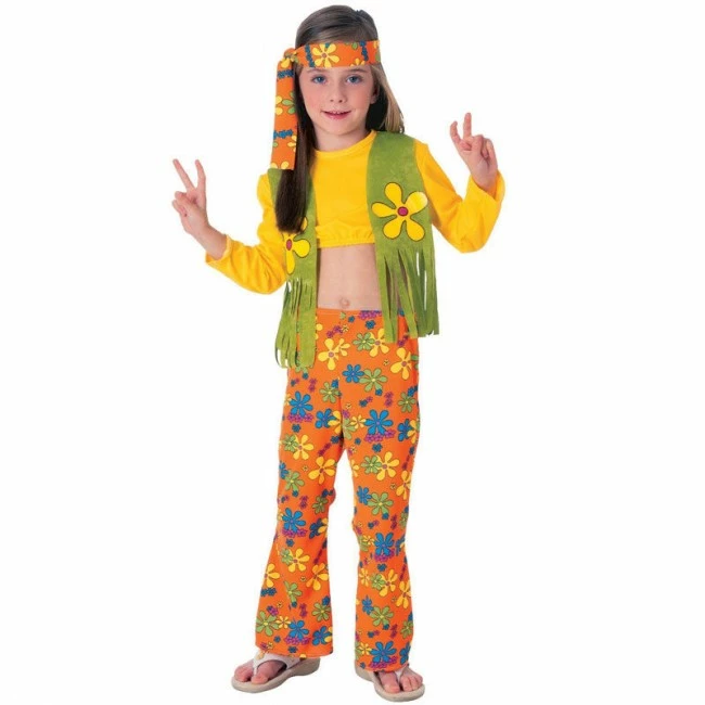 Tu hija simulará ser Hippie Flor utilizando este nuevo disfraz confeccionado en tallaje niña. Un atuendo chica infantil para fiestas de disfraces y cumpleaños que se compone de: Cinta para la cabeza, camisa con chaleco y pantalones acampanados y disponible en 3 tallas. Los precios más baratos para disfrazar a niñas de todas las edades.