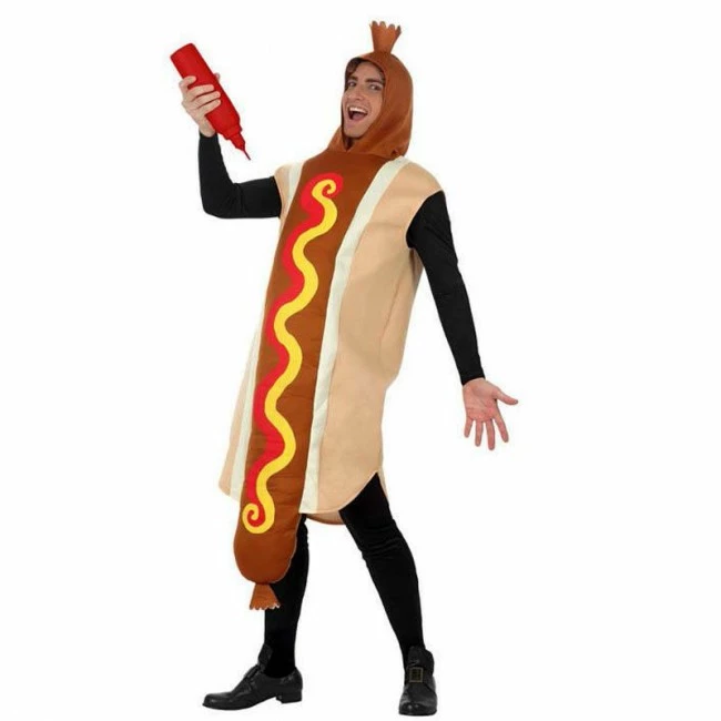 Divertido y original disfraz de Hombre Salchicha o Hot Dog. Este disfraz del tradicional Perrito Caliente americano se compone de toda una pieza en espuma con hueco para brazos y cabeza. Ideal para todo tipo de fiestas de disfraces o despedidas de soltero.