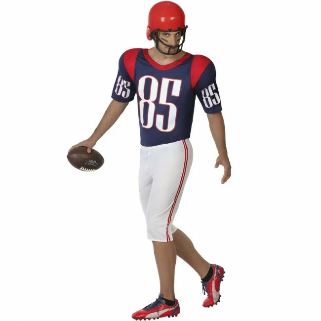 Transfórmate en un llamativo Jugador rugby azul de forma rápida usando este nuevo disfraz original de para hombres. No dejes pasar la oportunidad de disfrazarte como un Jugador fútbol americano con este traje de Carnaval masculino talla adulto que contiene camisa y pantalón y está disponible en 3 tallas. Este nuevo disfraz Jugador NFL de hombre es ideal para lucirlo en tu próxima fiesta de disfraces o desfile y forma parte de nuestro extenso catálogo de disfraces de Carnaval para hombre.