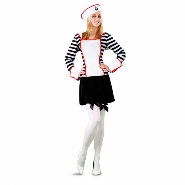 Descubre el nuevo disfraz de Marinera a Rayas en talla para mujer. Un vistoso vestido que te permitirá no pasar desapercibida en la próxima fiesta de disfraces temática. El disfraz adulto de Marinera a Rayas está compuesto por: Vestido y gorro. Comprar online los disfraces son todo ventajas.