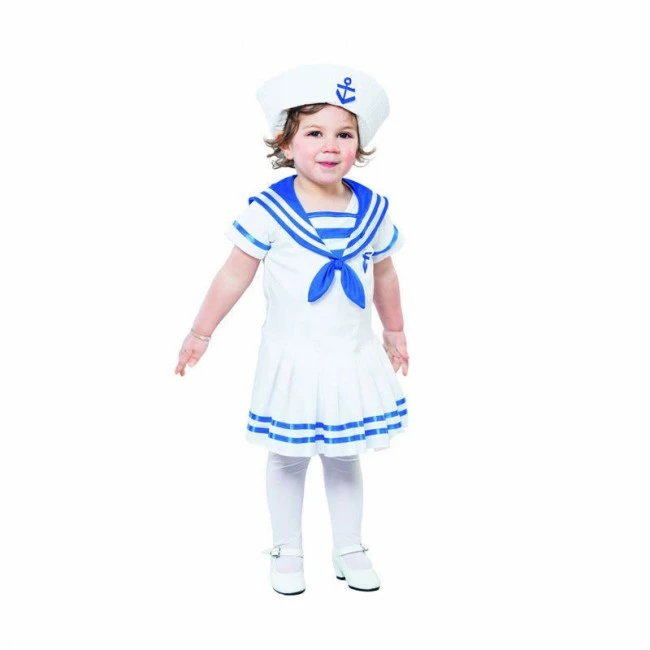 Elegante y gracioso vestido para convertir a las niñas más pequeñas de la casa en una estupenda marinerita. Un disfraz muy vistoso y original al mejor precio. Existe la versión para niñas más mayores. Disponible en talla 2 a 4 años.