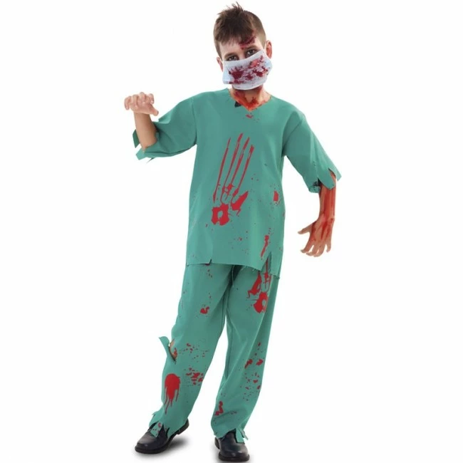 Transforma a tu hijo en un Médico sangriento gracias a este nuevo disfraz sobrecogedor para niños. La idea de disfrazarlo de médico zombie con este traje de Halloween masculino infantil que contiene camisa, pantalón y mascarilla y está disponible en 2 tallas diferentes suena escalofriante. No tenemos ninguna duda de que el nuevo disfraz para Halloween de doctor zombie de niño hará temblar de miedo a sus amiguitos en su próxima fiesta de los horrores, noche del terror o paseo pidiendo caramelos y forma parte de nuestra terrorífica selección de ideas para disfraces Halloween de niño. Convierte a tu pequeño en un terrorífico personaje la Noche de los Muertos con este original disfraz cirujano zombie de Halloween para niños.