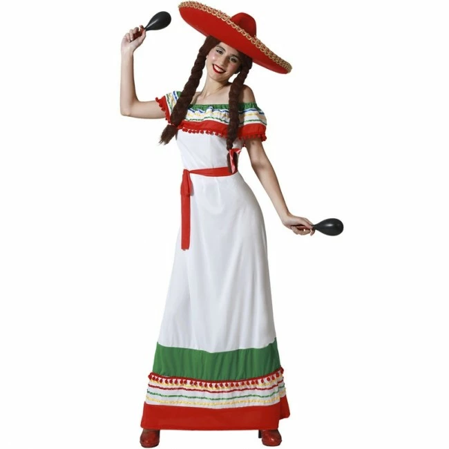 Sumérgete en el corazón de México con este colorido disfraz de mejicana o mexicana compuesto por vestido. Perfecto para grandes agrupaciones y comparsas en carnaval o fiestas de disfraces con temática de países.