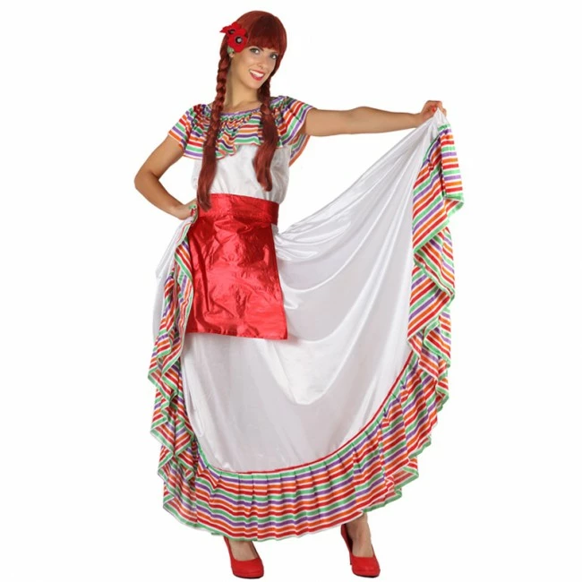 Excelente relación calidad precio en este disfraz de mexicana en talla adulto, muy colorido. Disfraz compuesto por falda, camisa y delantal. Ideal para carnaval y fiestas de disfraces con temática de países o México.