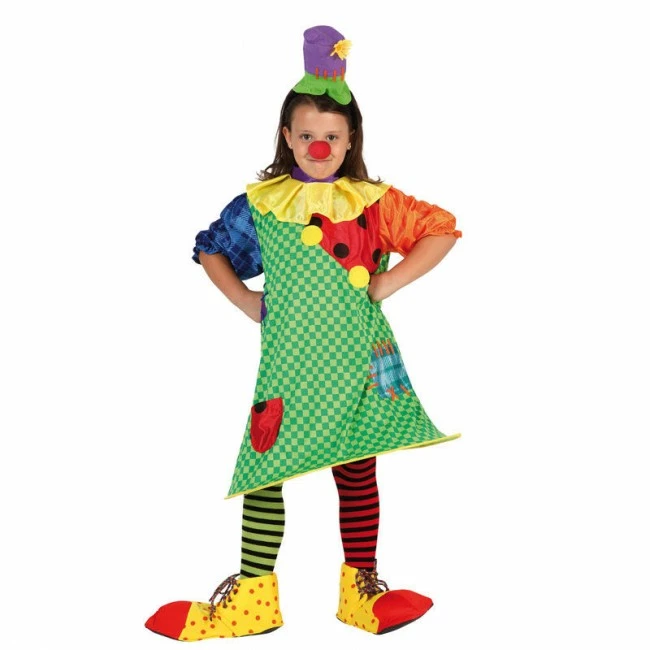Esta nuevo disfraz de Payasa con Aro niña se integra en nuestro catálogo de disfraces para niñas e incluye: Vestido y tocado. Elige entre 4 tallas este disfraz infantil para niña. Tu hija va a poder lucir este disfraz para niña en cantidad de fiestas de disfraces y Carnaval.