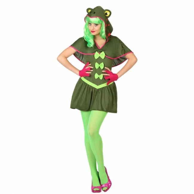 Un precioso y original modelo de Rana en tallaje mujer para fiestas y celebraciones disfrazadas. Este nuevo modelo señora está compuesto por: Vestido, capa con capucha y manoplas. Jarana asegurada con este disfraz en cualquier fiesta de cumpleaños de amigas, Carnaval o despedidas de soltera.