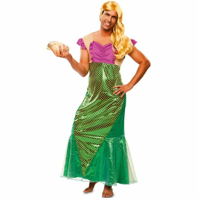 Si estás buscando un disfraz Sirenita hombre, estás delante del mejor precio de Internet. Obtén tus atuendos y disfraces para no parar de reír sin esfuerzo desde tu casa y te enviamos el disfraz Princesa Sirenita para hombre para que lo recibas al día siguiente. Un vistoso disfraz hombre de La Sirenita Ariel que se incorpora a nuestra oferta de disfraces para adulto masculinos para triunfar con la llegada de Carnaval, una despedida de soltero o cualquier otra fiesta temática de disfraces. Mira la foto del disfraz Sirenita travesti para hacerte una idea de cómo puede quedarte puesto. Solicita las medidas reales a nuestro equipo en caso de duda. Serás el centro de atención de todas las miradas enfundándote este llamativo disfraz completísimo que contiene el vestido.