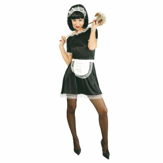 Económico disfraz de sirvienta sexy. Transfórmate rapidamente y de forma súper barata en una camarera gracias a este modelo con un toque sensual que incluye vestido, delantal y cofia. Ideal para comparsas en carnaval y fiestas temáticas de disfraces.