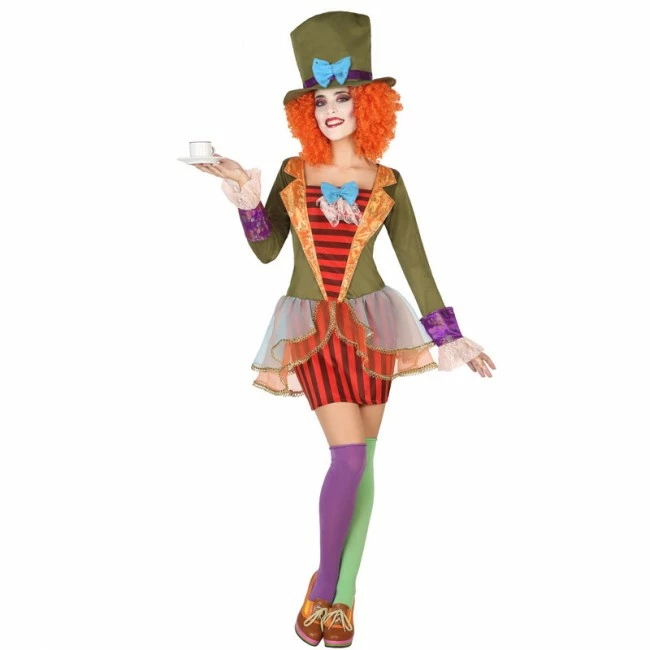 Disfruta de la última novedad para chicas, el disfraz de Sombrerera Loca adulto. Un vestido de Carnaval ideal para multitud de eventos. El disfraz de Sombrerera Loca mujer incorpora el colorido vestido y el famosa chistera alta de este simpático y característico personaje. Uno de los mejores catálogos de disfraces de Internet.