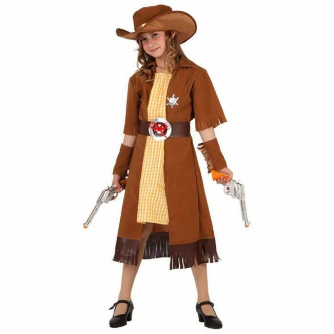 Descubre el novedoso disfraz de Vaquera Marrón en talla para niñas. Un bonito vestido infantil para Carnaval y fiestas de cumpleaños. El disfraz para niña de Vaquera Marrón incluye: Vestido, sombrero, cinturón, muñequeras y pañuelo. Nuestra tienda online ofrece gran seguridad en el pago de la compra de los disfraces para tus hijas. Disponible en tallas de 3 a 12 años.
