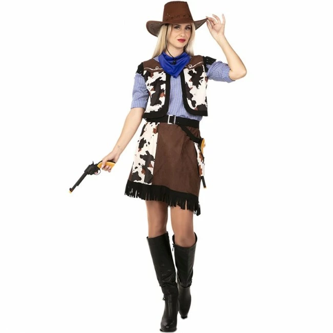 Conviértete en una llamativa Vaquera pistolera de forma sencilla usando este nuevo disfraz original para mujeres. No pasarás desapercibida disfrazándote como Western con este traje de Carnaval femenino talla adulto que contiene la camisa con chaleco, falda, cinturón, pañuelo y está disponible en 3 talla diferentes. Este nuevo traje de Vaquera pistolera de mujer es ideal para lucirlo en tu próxima fiesta de disfraces o noche temática y forma parte de nuestro extenso catálogo de disfraces de Carnaval para mujeres.
