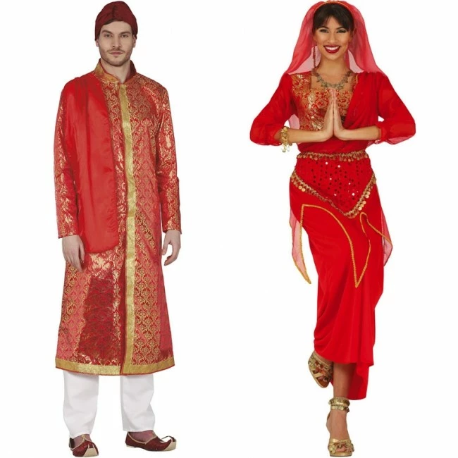 Multitud de detalle y acabados más que aceptables en este conjunto de disfraces darán el toque de realismo que necesitas para ir disfrazado a juego de Reyes Hindús convirtiéndoos a la pareja en el centro de atención de cualquier evento, desfile de Carnaval o una despedida de soltero y soltera.